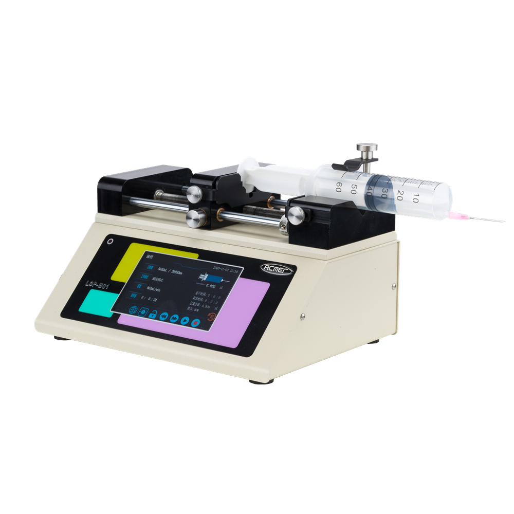 產(chǎn)品特點:5寸高清觸摸屏,界面友好、方便操控;高剛度底板保證系統(tǒng)穩(wěn)定;精密的傳動機構和電機控制設計;適合微小流量液體傳輸,如靜電紡絲等;可以支持到200ml注射器